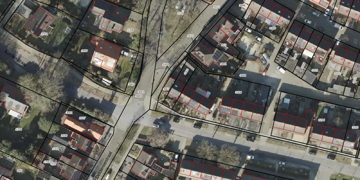 Het perceel waarop Europastraat 13 staat heeft een oppervlakte van 177 m². Dit is een middelgroot perceel. De perceeloppervlakte wordt geregistreerd door het Kadaster. Gedetailleerde informatie over de maten van dit perceel kunt u vinden in het rapport Kadastrale kaart met maatvoering van Europastraat 13.