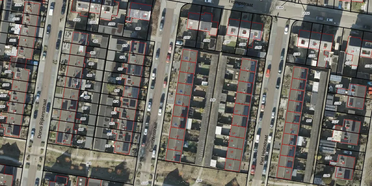 Het perceel waarop Evertzenstraat 7 staat heeft een oppervlakte van 3069 m². Dit is een zeer groot perceel. De perceeloppervlakte wordt geregistreerd door het Kadaster. Gedetailleerde informatie over de maten van dit perceel kunt u vinden in het rapport Kadastrale kaart met maatvoering van Evertzenstraat 7.