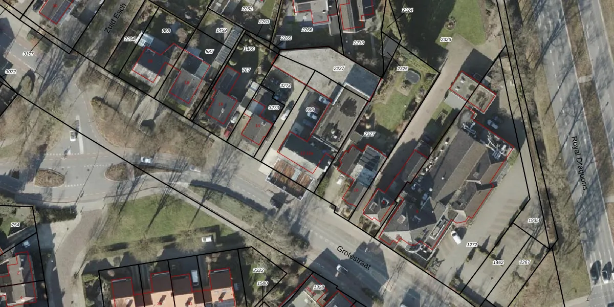 Het perceel waarop Grotestraat 12 staat heeft een oppervlakte van 701 m². Dit is een groot perceel. De perceeloppervlakte wordt geregistreerd door het Kadaster. Gedetailleerde informatie over de maten van dit perceel kunt u vinden in het rapport Kadastrale kaart met maatvoering van Grotestraat 12.