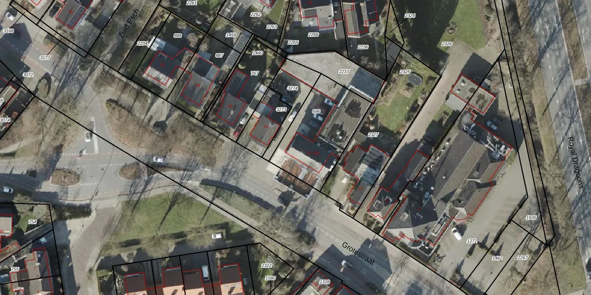 Het perceel waarop Grotestraat 12-a staat heeft een oppervlakte van 701 m². Dit is een groot perceel. De perceeloppervlakte wordt geregistreerd door het Kadaster. Gedetailleerde informatie over de maten van dit perceel kunt u vinden in het rapport Kadastrale kaart met maatvoering van Grotestraat 12-a.