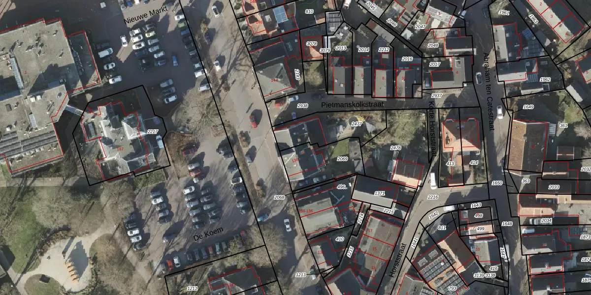 Gebruik de zoekbalk of klik op een perceel voor informatie over de adressen binnen dit perceel.