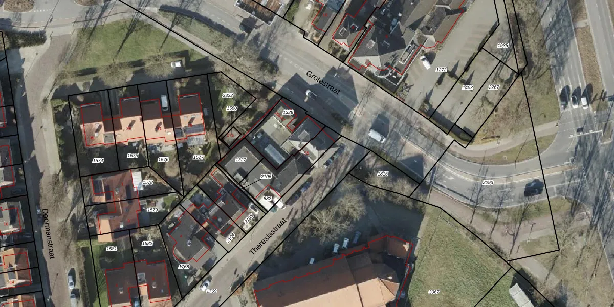 Het perceel waarop Grotestraat 25 staat heeft een oppervlakte van 305 m². Dit is een groot perceel. De perceeloppervlakte wordt geregistreerd door het Kadaster. Gedetailleerde informatie over de maten van dit perceel kunt u vinden in het rapport Kadastrale kaart met maatvoering van Grotestraat 25.