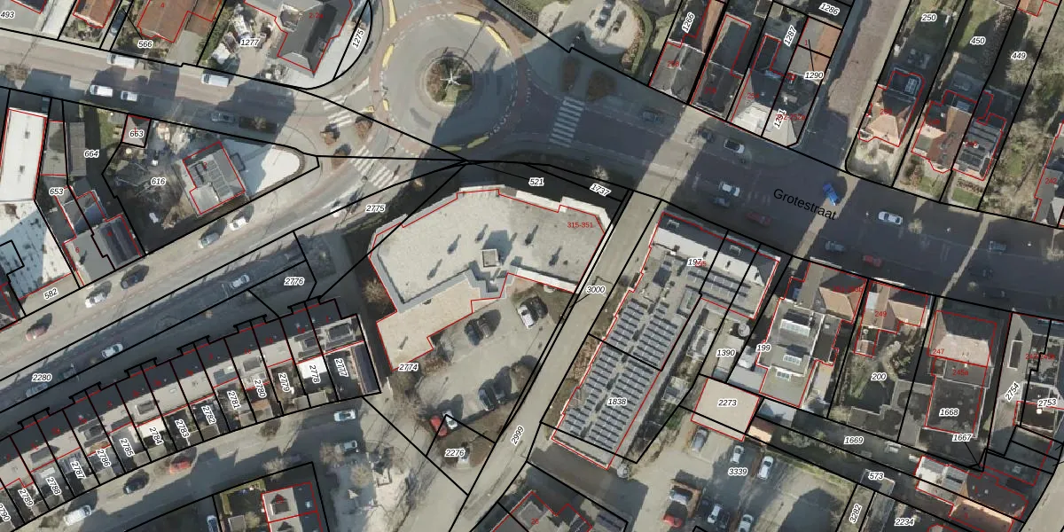 Het perceel waarop Grotestraat 345 staat heeft een oppervlakte van 1745 m². Dit is een zeer groot perceel. De perceeloppervlakte wordt geregistreerd door het Kadaster. Gedetailleerde informatie over de maten van dit perceel kunt u vinden in het rapport Kadastrale kaart met maatvoering van Grotestraat 345.