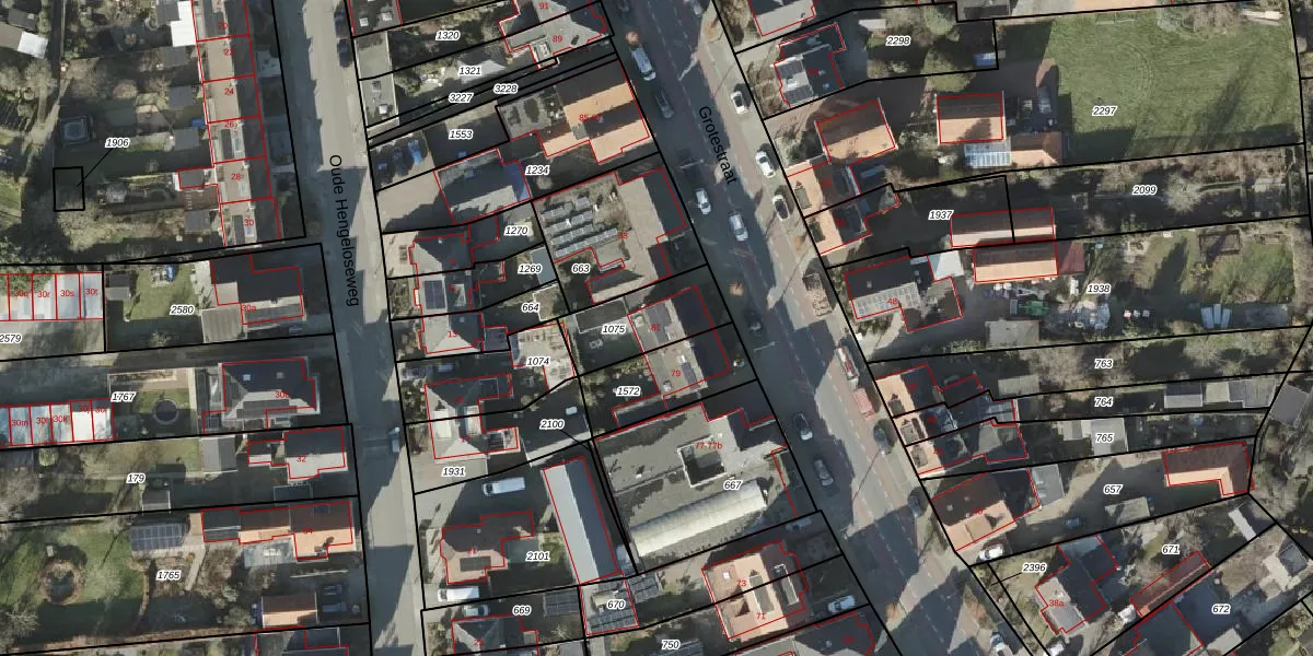 Het perceel waarop Grotestraat 81 staat heeft een oppervlakte van 233 m². Dit is een middelgroot perceel. De perceeloppervlakte wordt geregistreerd door het Kadaster. Gedetailleerde informatie over de maten van dit perceel kunt u vinden in het rapport Kadastrale kaart met maatvoering van Grotestraat 81.
