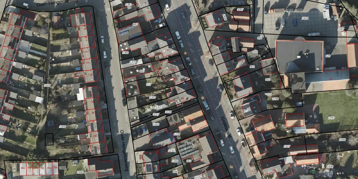 Het perceel waarop Grotestraat 91 staat heeft een oppervlakte van 226 m². Dit is een middelgroot perceel. De perceeloppervlakte wordt geregistreerd door het Kadaster. Gedetailleerde informatie over de maten van dit perceel kunt u vinden in het rapport Kadastrale kaart met maatvoering van Grotestraat 91.