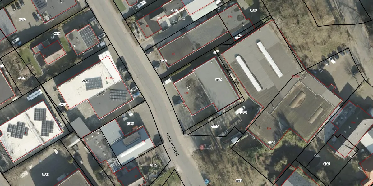 Het perceel waarop Hanzestraat 12-b staat heeft een oppervlakte van 1055 m². Dit is een zeer groot perceel. De perceeloppervlakte wordt geregistreerd door het Kadaster. Gedetailleerde informatie over de maten van dit perceel kunt u vinden in het rapport Kadastrale kaart met maatvoering van Hanzestraat 12-b.