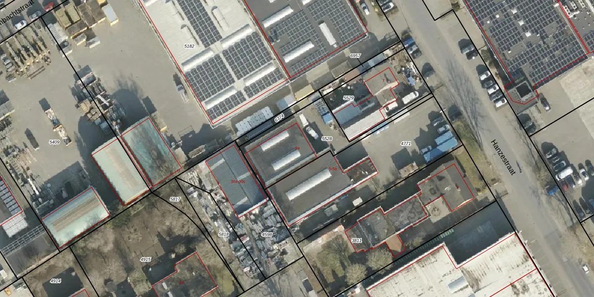 Het perceel waarop Hanzestraat 5-a staat heeft een oppervlakte van 604 m². Dit is een groot perceel. De perceeloppervlakte wordt geregistreerd door het Kadaster. Gedetailleerde informatie over de maten van dit perceel kunt u vinden in het rapport Kadastrale kaart met maatvoering van Hanzestraat 5-a.