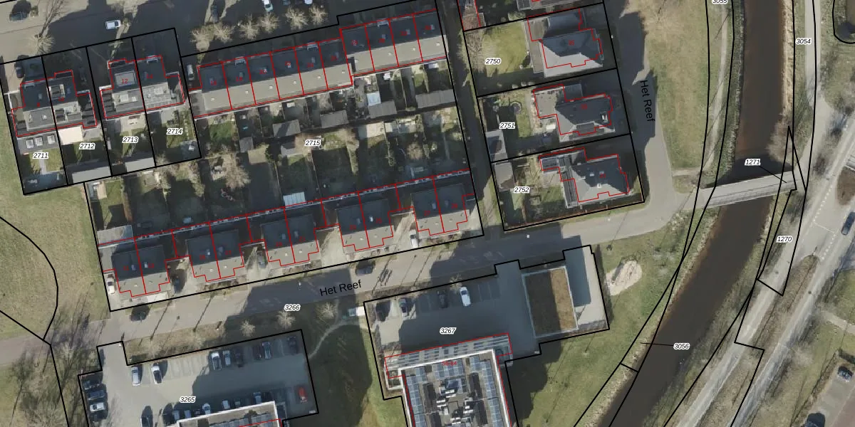 Het perceel waarop Het Reef 27 staat heeft een oppervlakte van 4320 m². Dit is een zeer groot perceel. De perceeloppervlakte wordt geregistreerd door het Kadaster. Gedetailleerde informatie over de maten van dit perceel kunt u vinden in het rapport Kadastrale kaart met maatvoering van Het Reef 27.
