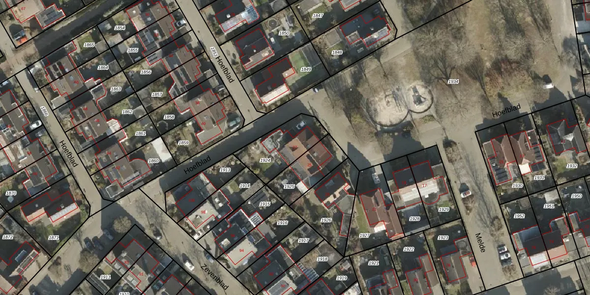 Het perceel waarop Hoefblad 27 staat heeft een oppervlakte van 365 m². Dit is een groot perceel. De perceeloppervlakte wordt geregistreerd door het Kadaster. Gedetailleerde informatie over de maten van dit perceel kunt u vinden in het rapport Kadastrale kaart met maatvoering van Hoefblad 27.