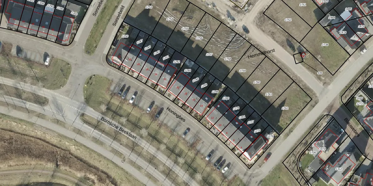 Honingbes 18 is gelegen op kadastraal perceel BNE00C1246. Deze kadastrale aanduiding is uniek en wordt gebruikt door het Kadaster om eigendomsrechten en andere zakelijke rechten vast te leggen. Het perceel maakt onderdeel uit van de kadastrale gemeente Borne.