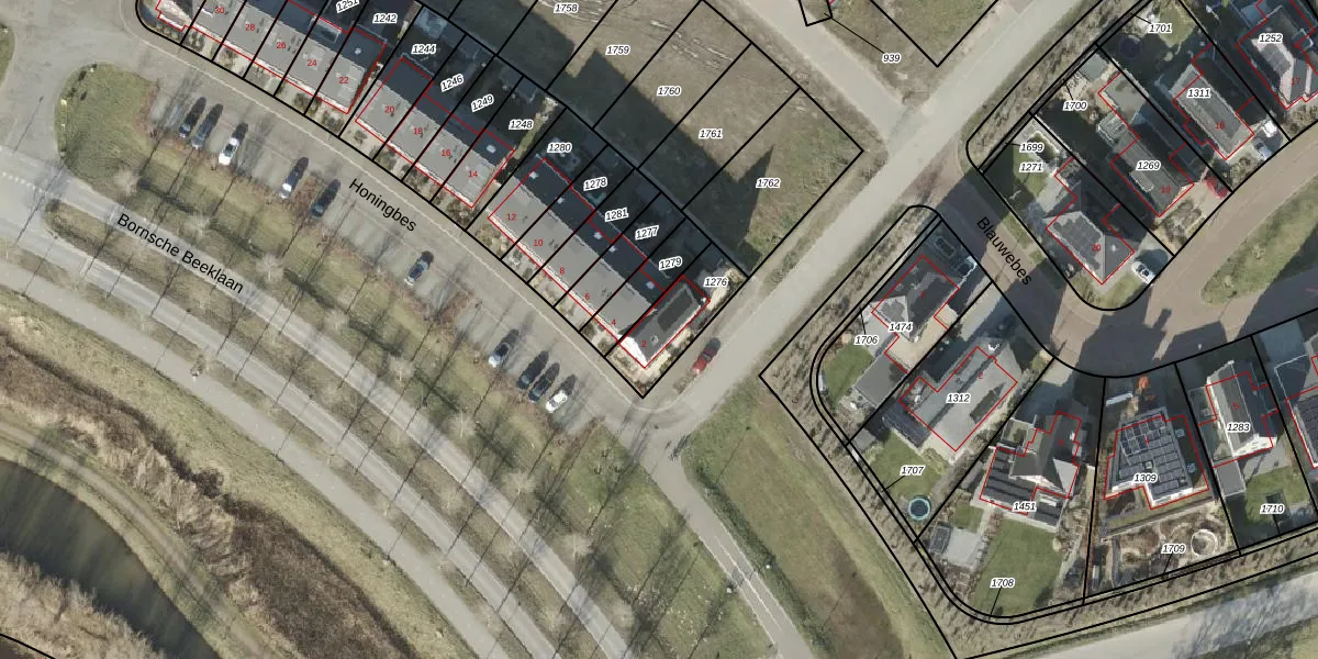 Het perceel waarop Honingbes 2 staat heeft een oppervlakte van 197 m². Dit is een middelgroot perceel. De perceeloppervlakte wordt geregistreerd door het Kadaster. Gedetailleerde informatie over de maten van dit perceel kunt u vinden in het rapport Kadastrale kaart met maatvoering van Honingbes 2.