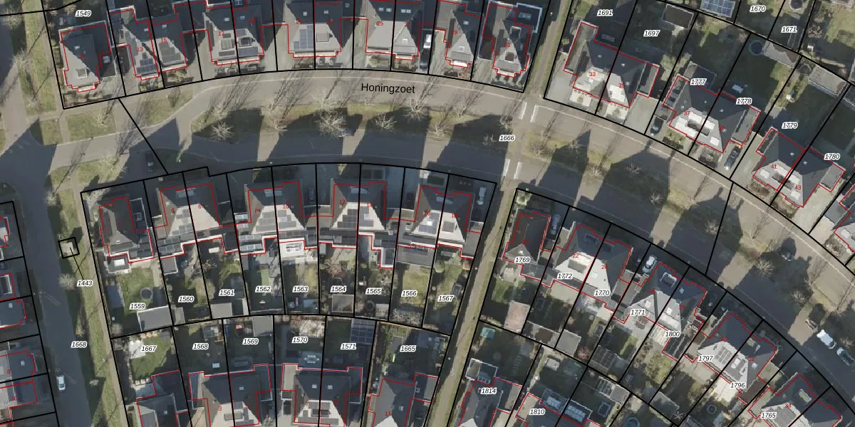 Honingzoet 16 is gelegen op kadastraal perceel BNE00H1566. Deze kadastrale aanduiding is uniek en wordt gebruikt door het Kadaster om eigendomsrechten en andere zakelijke rechten vast te leggen. Het perceel maakt onderdeel uit van de kadastrale gemeente Borne.