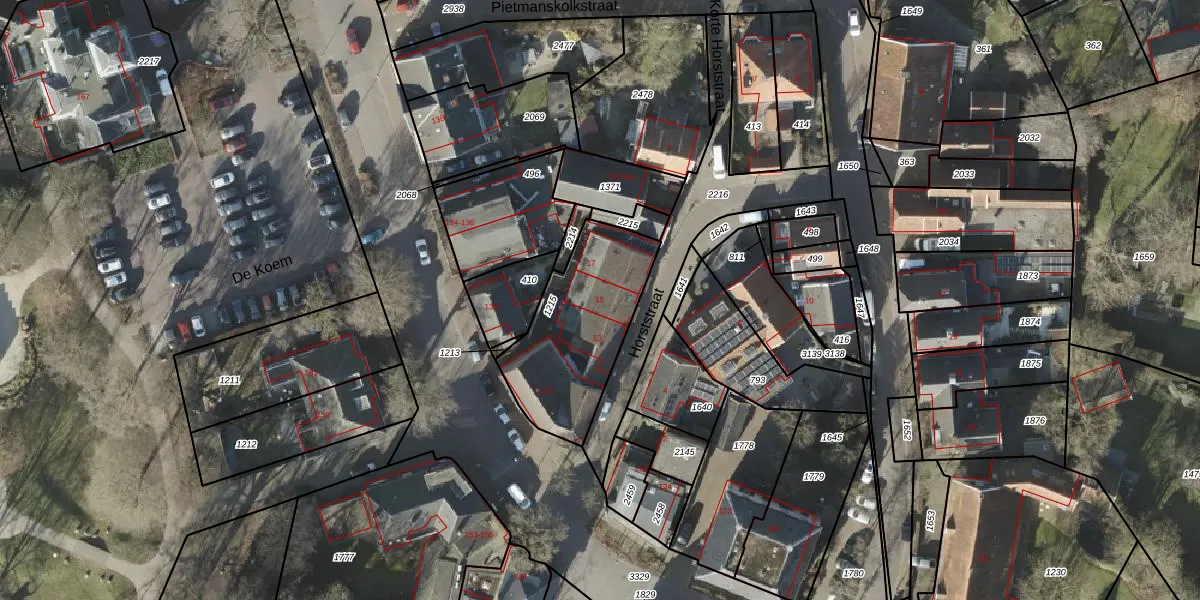Het perceel waarop Horststraat 15 staat heeft een oppervlakte van 524 m². Dit is een groot perceel. De perceeloppervlakte wordt geregistreerd door het Kadaster. Gedetailleerde informatie over de maten van dit perceel kunt u vinden in het rapport Kadastrale kaart met maatvoering van Horststraat 15.