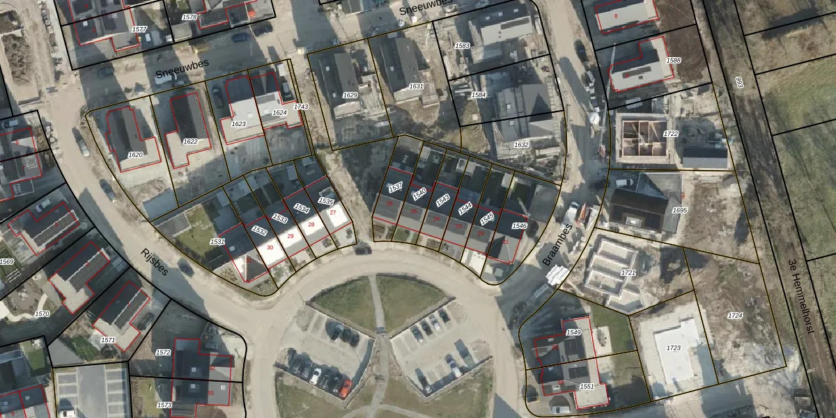 Gebruik de zoekbalk of klik op een perceel voor informatie over de adressen binnen dit perceel.