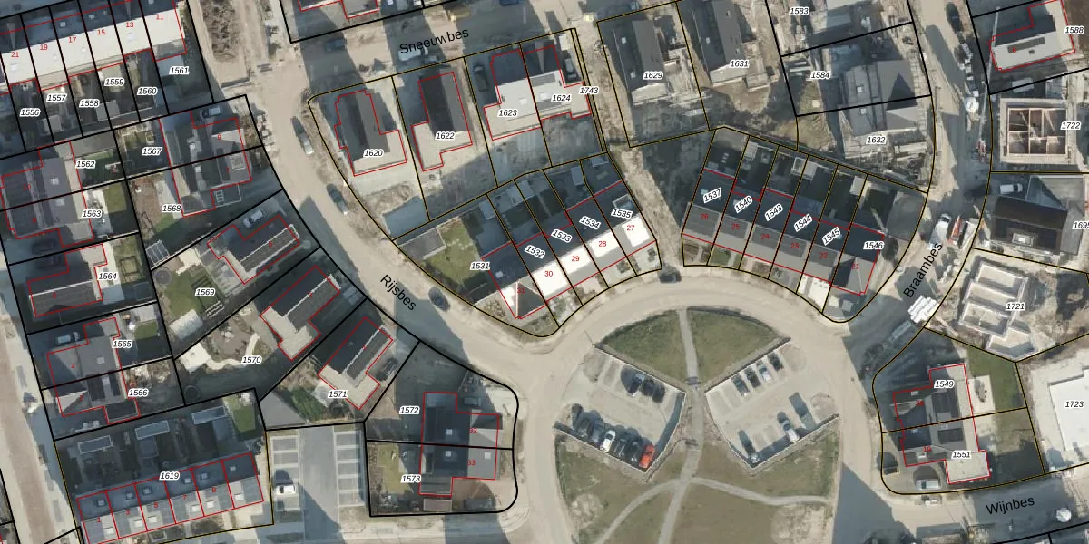 Het perceel waarop Jeneverbes 30 staat heeft een oppervlakte van 155 m². Dit is een middelgroot perceel. De perceeloppervlakte wordt geregistreerd door het Kadaster. Gedetailleerde informatie over de maten van dit perceel kunt u vinden in het rapport Kadastrale kaart met maatvoering van Jeneverbes 30.