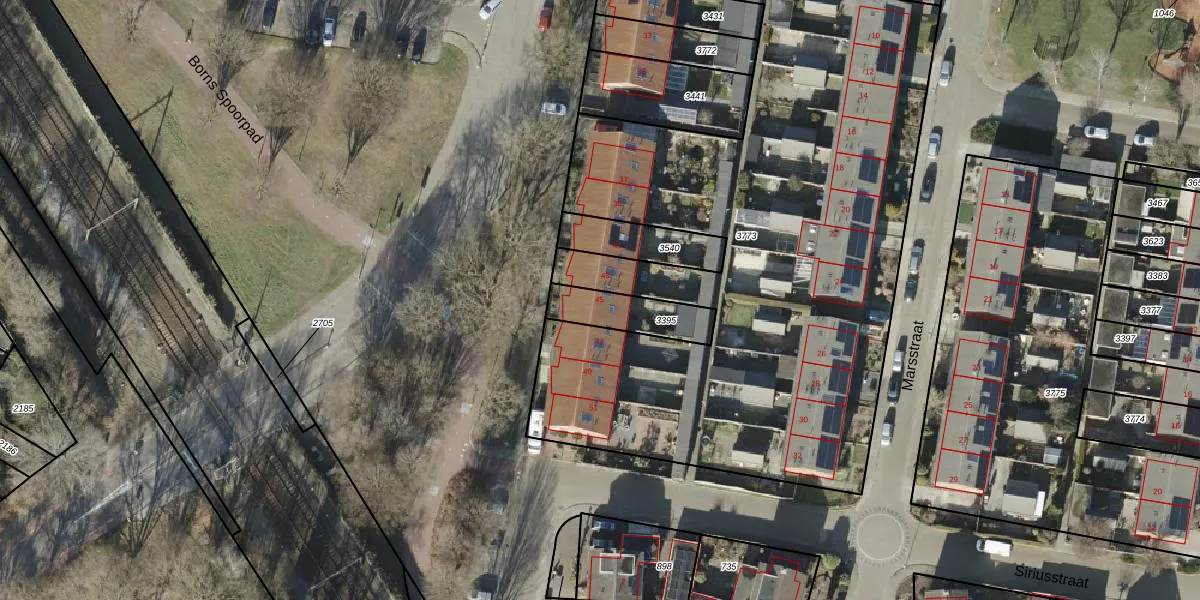 Het perceel waarop Jupiterstraat 45 staat heeft een oppervlakte van 170 m². Dit is een middelgroot perceel. De perceeloppervlakte wordt geregistreerd door het Kadaster. Gedetailleerde informatie over de maten van dit perceel kunt u vinden in het rapport Kadastrale kaart met maatvoering van Jupiterstraat 45.