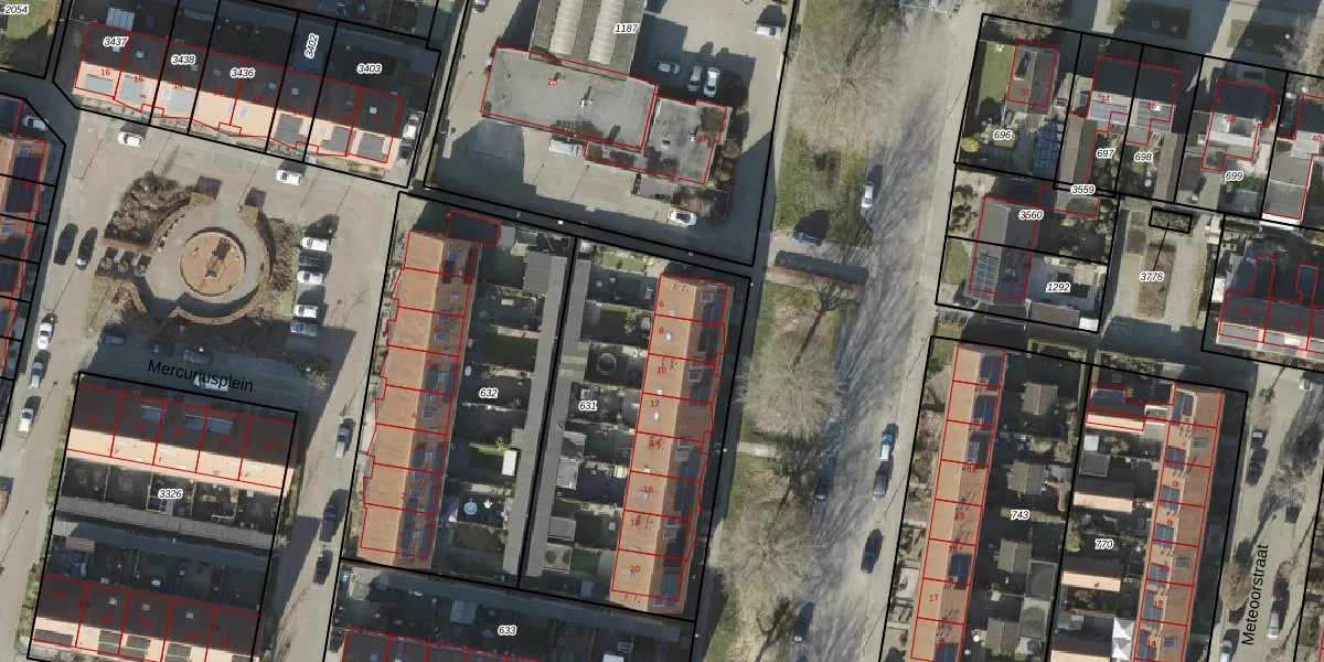 Het perceel waarop Jupiterstraat 8 staat heeft een oppervlakte van 1474 m². Dit is een zeer groot perceel. De perceeloppervlakte wordt geregistreerd door het Kadaster. Gedetailleerde informatie over de maten van dit perceel kunt u vinden in het rapport Kadastrale kaart met maatvoering van Jupiterstraat 8.