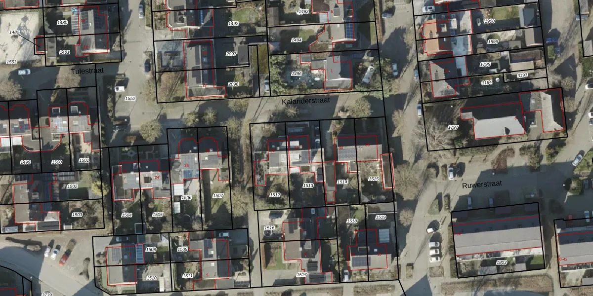 Kalanderstraat 32 is gelegen op kadastraal perceel BNE00K1513. Deze kadastrale aanduiding is uniek en wordt gebruikt door het Kadaster om eigendomsrechten en andere zakelijke rechten vast te leggen. Het perceel maakt onderdeel uit van de kadastrale gemeente Borne.
