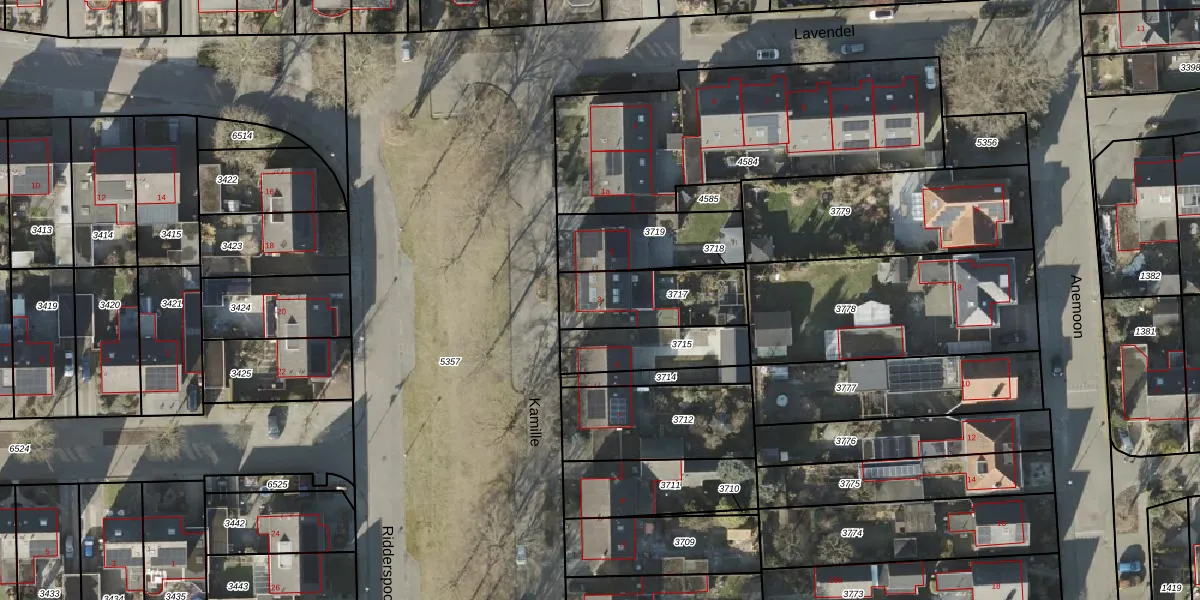 Het perceel waarop Kamille 3 staat heeft een oppervlakte van 302 m². Dit is een groot perceel. De perceeloppervlakte wordt geregistreerd door het Kadaster. Gedetailleerde informatie over de maten van dit perceel kunt u vinden in het rapport Kadastrale kaart met maatvoering van Kamille 3.