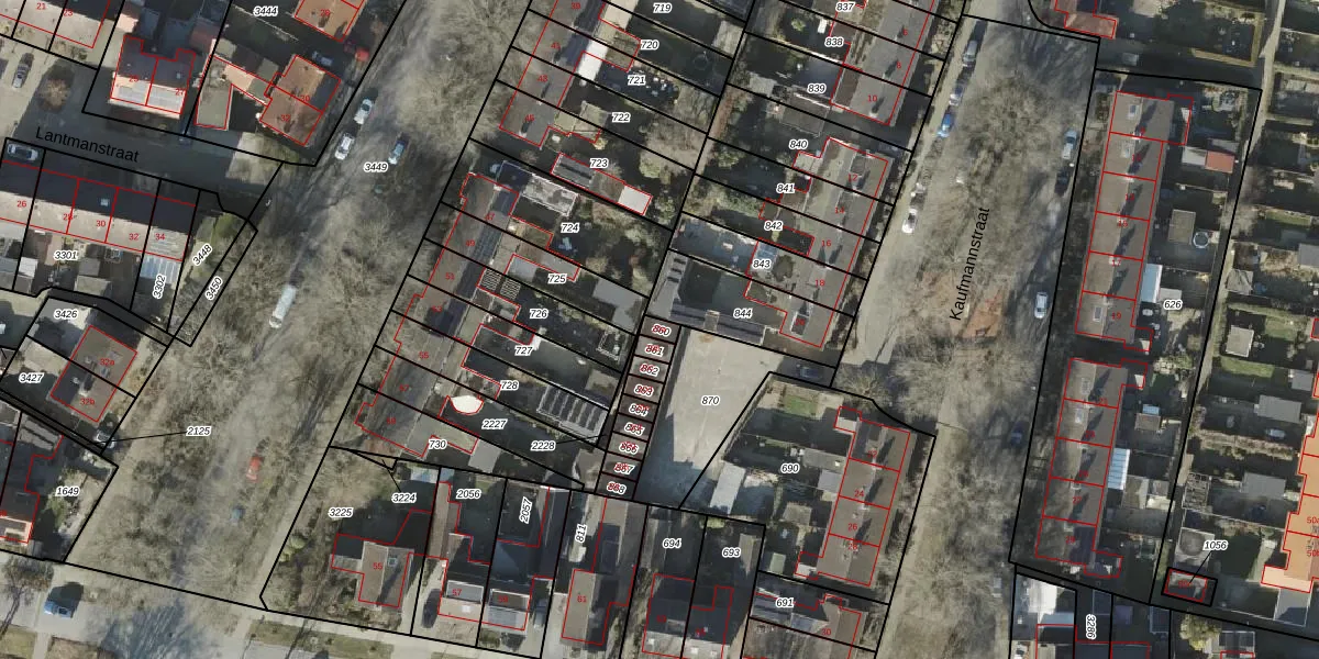 Het perceel waarop Kaufmannstraat 20-a staat heeft een oppervlakte van 19 m². Dit is een klein perceel. De perceeloppervlakte wordt geregistreerd door het Kadaster. Gedetailleerde informatie over de maten van dit perceel kunt u vinden in het rapport Kadastrale kaart met maatvoering van Kaufmannstraat 20-a.