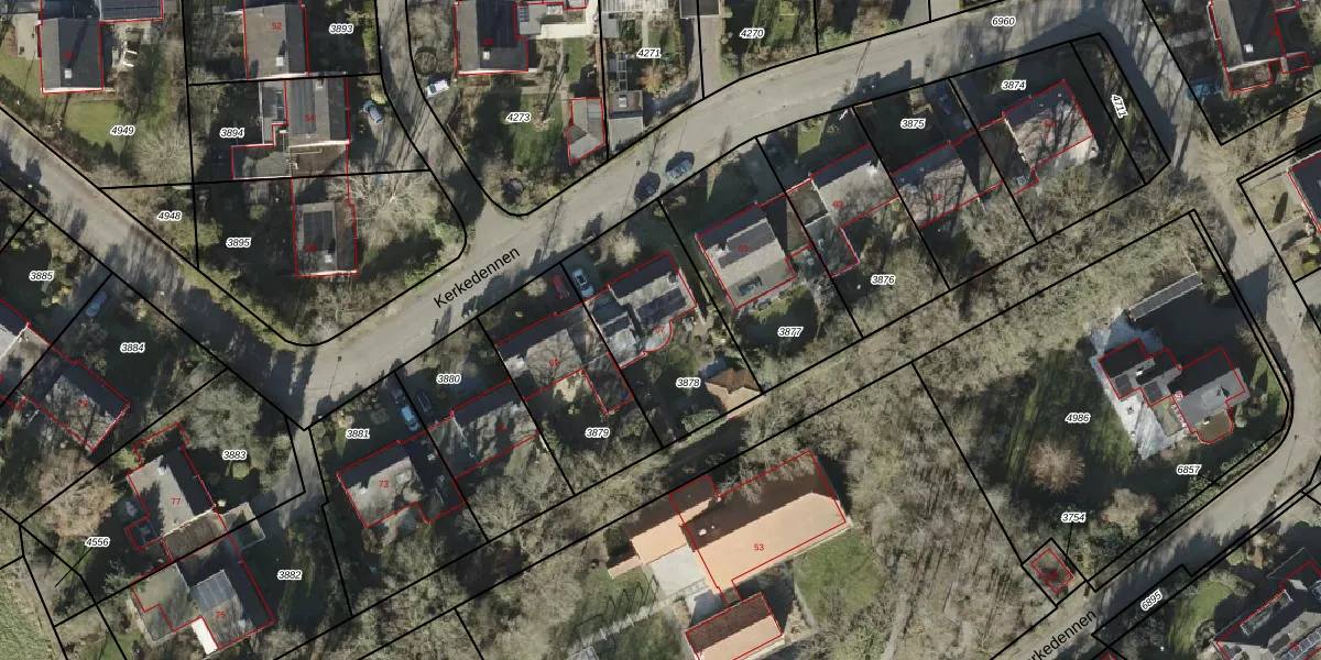 Kerkedennen 67 is gelegen op kadastraal perceel BNE00E3878. Deze kadastrale aanduiding is uniek en wordt gebruikt door het Kadaster om eigendomsrechten en andere zakelijke rechten vast te leggen. Het perceel maakt onderdeel uit van de kadastrale gemeente Borne.