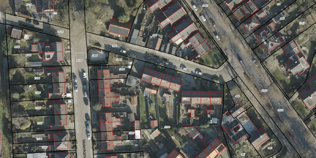 Het perceel waarop Koekoekslaan 13 staat heeft een oppervlakte van 5175 m². Dit is een zeer groot perceel. De perceeloppervlakte wordt geregistreerd door het Kadaster. Gedetailleerde informatie over de maten van dit perceel kunt u vinden in het rapport Kadastrale kaart met maatvoering van Koekoekslaan 13.