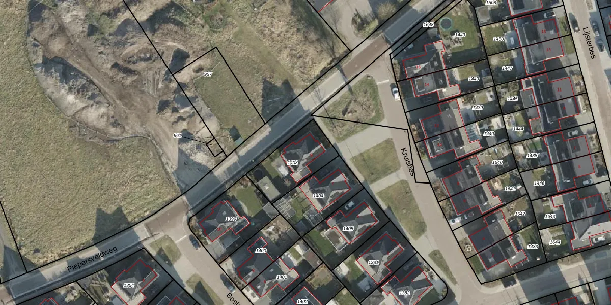 Gebruik de zoekbalk of klik op een perceel voor informatie over de adressen binnen dit perceel.