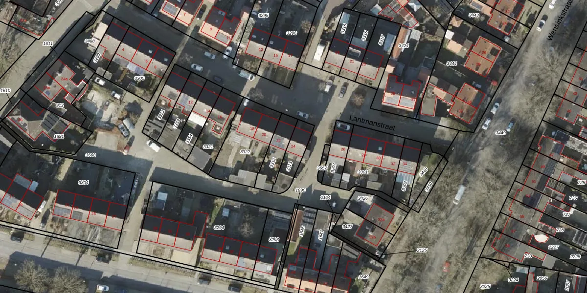 Gebruik de zoekbalk of klik op een perceel voor informatie over de adressen binnen dit perceel.