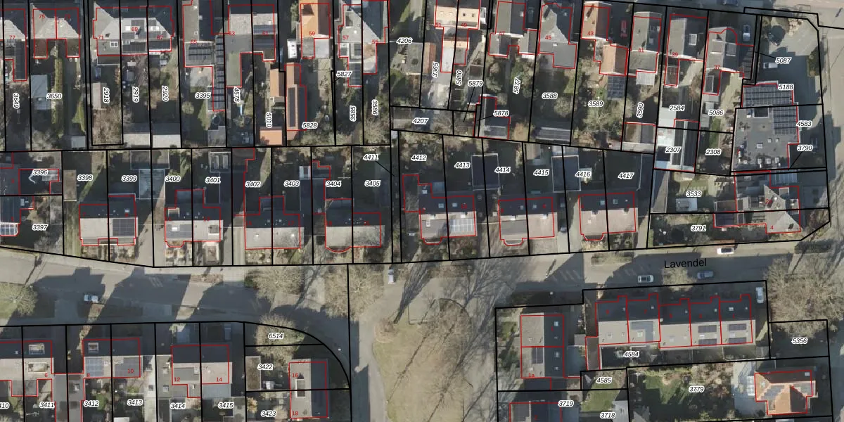 Het perceel waarop Lavendel 12 staat heeft een oppervlakte van 330 m². Dit is een groot perceel. De perceeloppervlakte wordt geregistreerd door het Kadaster. Gedetailleerde informatie over de maten van dit perceel kunt u vinden in het rapport Kadastrale kaart met maatvoering van Lavendel 12.