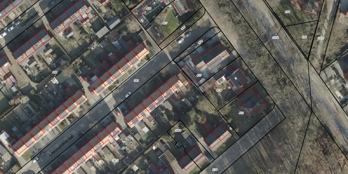 Het perceel waarop Leeuwerikstraat 1 staat heeft een oppervlakte van 6697 m². Dit is een zeer groot perceel. De perceeloppervlakte wordt geregistreerd door het Kadaster. Gedetailleerde informatie over de maten van dit perceel kunt u vinden in het rapport Kadastrale kaart met maatvoering van Leeuwerikstraat 1.