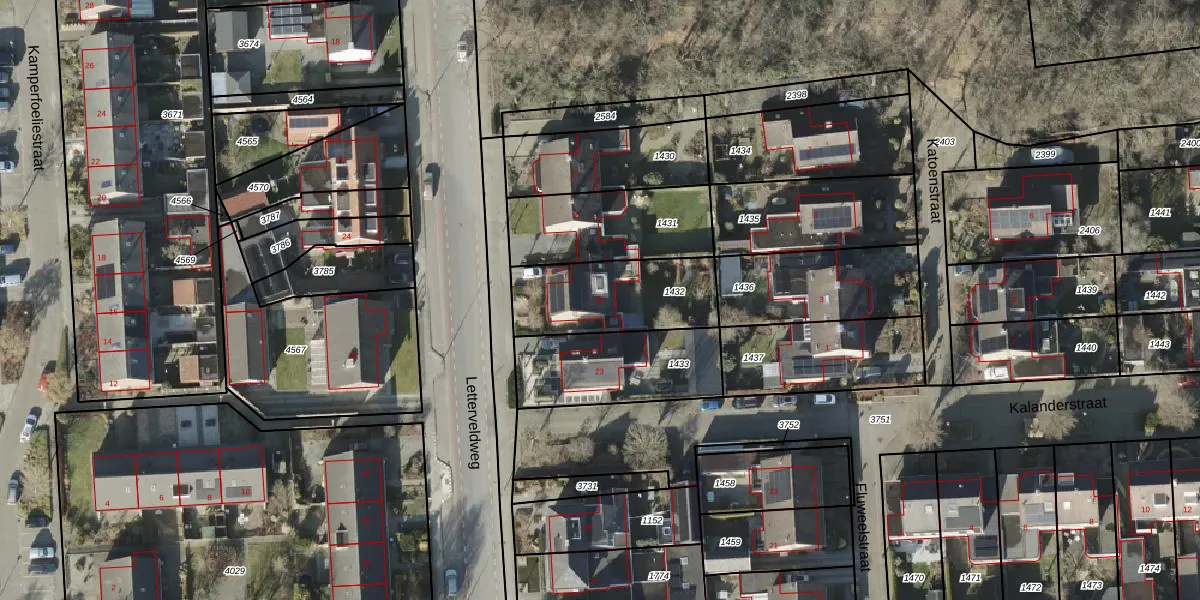 Letterveldweg 21 is gelegen op kadastraal perceel BNE00K1432. Deze kadastrale aanduiding is uniek en wordt gebruikt door het Kadaster om eigendomsrechten en andere zakelijke rechten vast te leggen. Het perceel maakt onderdeel uit van de kadastrale gemeente Borne.