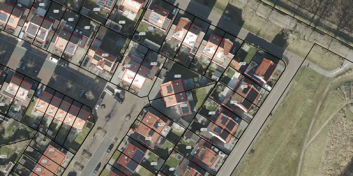 Gebruik de zoekbalk of klik op een perceel voor informatie over de adressen binnen dit perceel.