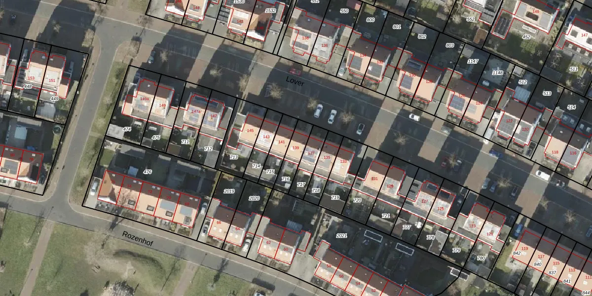 Gebruik de zoekbalk of klik op een perceel voor informatie over de adressen binnen dit perceel.