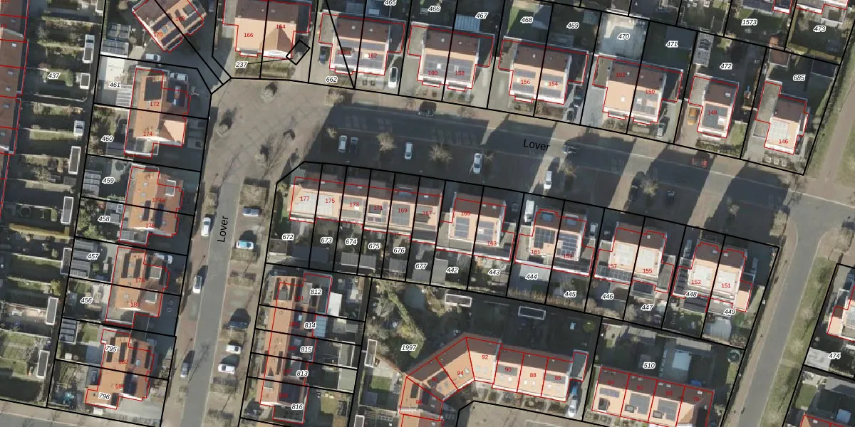 Het perceel waarop Lover 167 staat heeft een oppervlakte van 150 m². Dit is een middelgroot perceel. De perceeloppervlakte wordt geregistreerd door het Kadaster. Gedetailleerde informatie over de maten van dit perceel kunt u vinden in het rapport Kadastrale kaart met maatvoering van Lover 167.