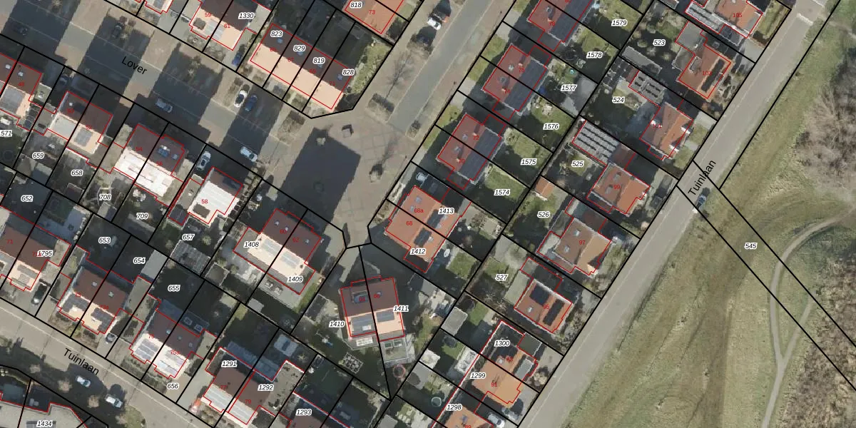 Lover 68-a is gelegen op kadastraal perceel BNE00L1413. Deze kadastrale aanduiding is uniek en wordt gebruikt door het Kadaster om eigendomsrechten en andere zakelijke rechten vast te leggen. Het perceel maakt onderdeel uit van de kadastrale gemeente Borne.