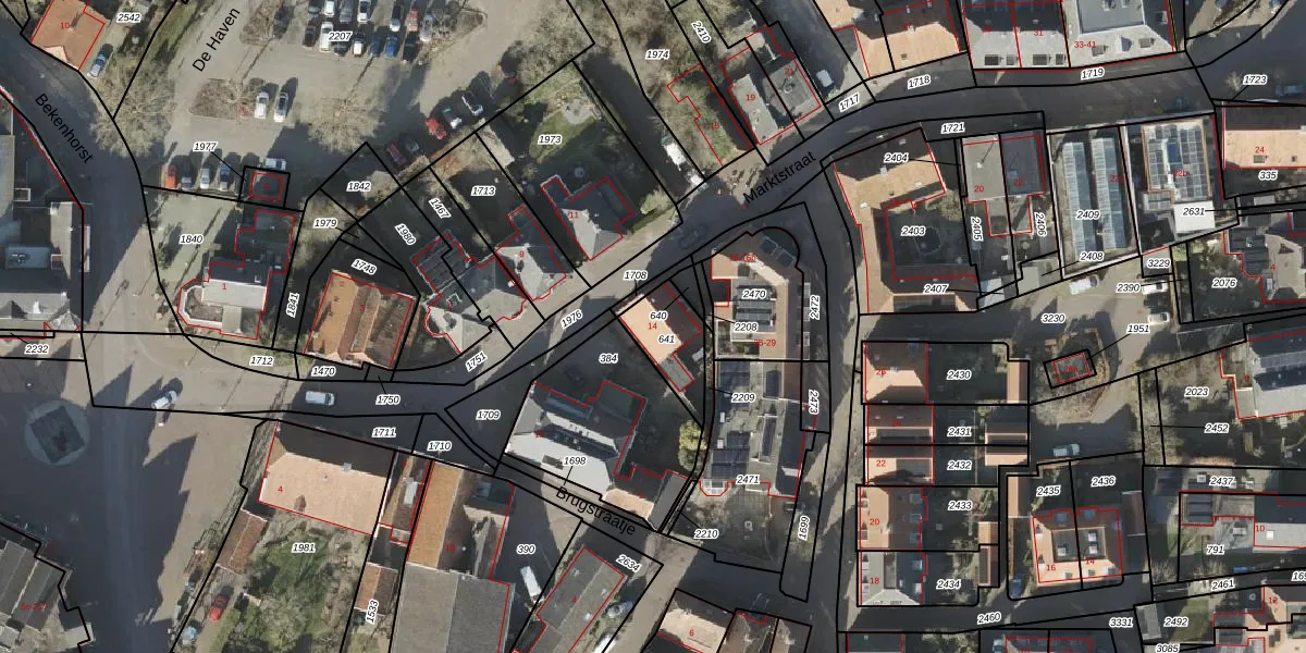 Marktstraat 14 is gelegen op kadastraal perceel BNE00I641. Deze kadastrale aanduiding is uniek en wordt gebruikt door het Kadaster om eigendomsrechten en andere zakelijke rechten vast te leggen. Het perceel maakt onderdeel uit van de kadastrale gemeente Borne.