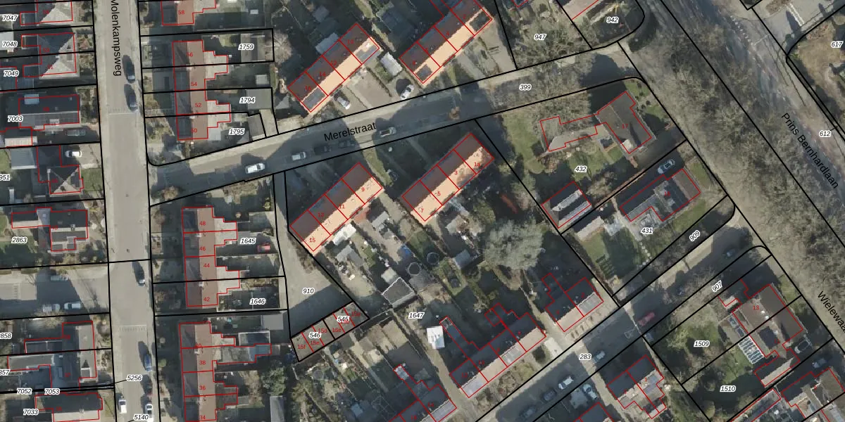 Het perceel waarop Merelstraat 7 staat heeft een oppervlakte van 6756 m². Dit is een zeer groot perceel. De perceeloppervlakte wordt geregistreerd door het Kadaster. Gedetailleerde informatie over de maten van dit perceel kunt u vinden in het rapport Kadastrale kaart met maatvoering van Merelstraat 7.