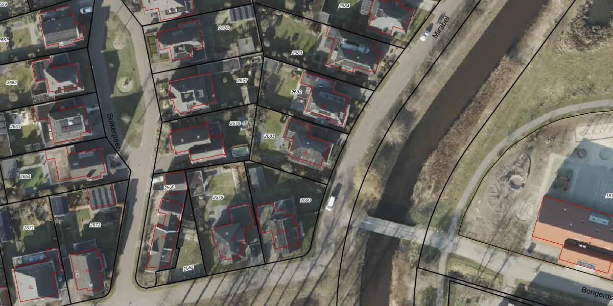 Het perceel waarop Mirabel 31 staat heeft een oppervlakte van 519 m². Dit is een groot perceel. De perceeloppervlakte wordt geregistreerd door het Kadaster. Gedetailleerde informatie over de maten van dit perceel kunt u vinden in het rapport Kadastrale kaart met maatvoering van Mirabel 31.