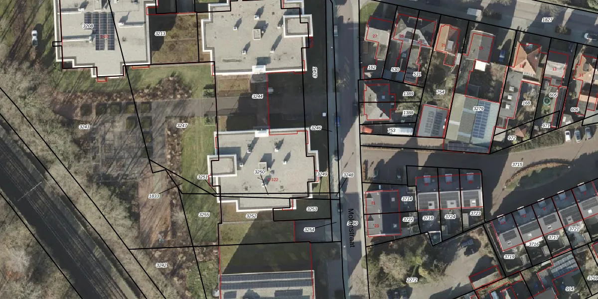 Het perceel waarop Molenstraat 84 staat heeft een oppervlakte van 2010 m². Dit is een zeer groot perceel. De perceeloppervlakte wordt geregistreerd door het Kadaster. Gedetailleerde informatie over de maten van dit perceel kunt u vinden in het rapport Kadastrale kaart met maatvoering van Molenstraat 84.