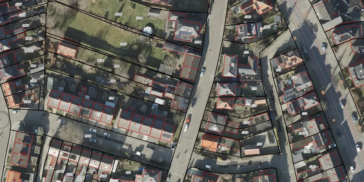 Gebruik de zoekbalk of klik op een perceel voor informatie over de adressen binnen dit perceel.