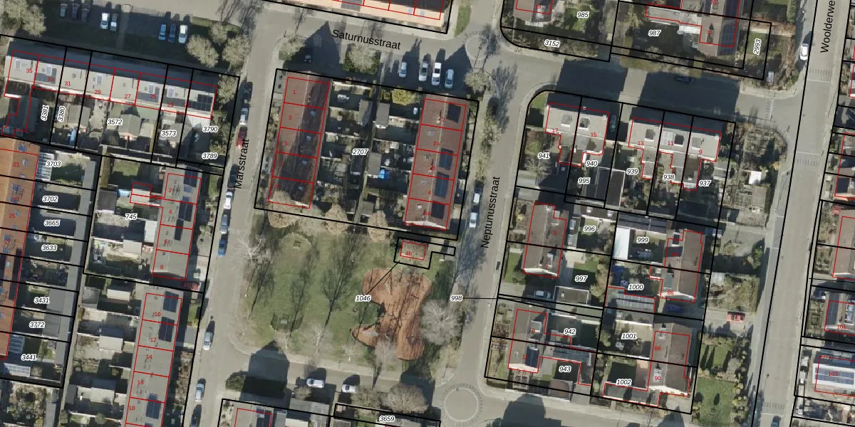 Het perceel waarop Neptunusstraat 4-a staat heeft een oppervlakte van 1586 m². Dit is een zeer groot perceel. De perceeloppervlakte wordt geregistreerd door het Kadaster. Gedetailleerde informatie over de maten van dit perceel kunt u vinden in het rapport Kadastrale kaart met maatvoering van Neptunusstraat 4-a.