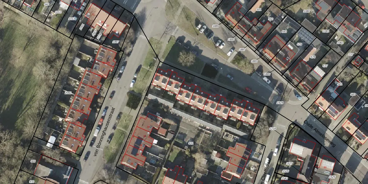 Oude Almeloseweg 49 is gelegen op kadastraal perceel BNE00H931. Deze kadastrale aanduiding is uniek en wordt gebruikt door het Kadaster om eigendomsrechten en andere zakelijke rechten vast te leggen. Het perceel maakt onderdeel uit van de kadastrale gemeente Borne.