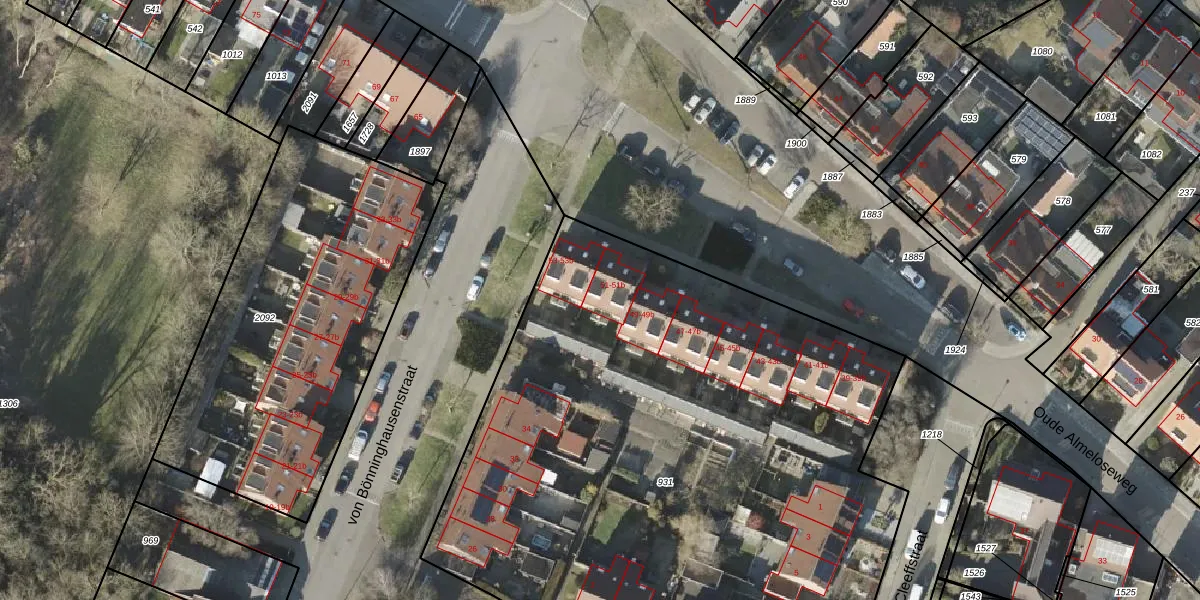 Het adres is gelegen op perceel 931 in de sectie H en de kadastrale gemeente Borne. De kadastrale aanduiding is aldus BNE00-H-931. Het perceel is met 4335 m² relatief groot. Het gemiddelde ligt in de kadastrale gemeente Borne op 1963,27 m². Het kleinste perceel in de kadastrale gemeente is 0 m² groot. De grootste perceeloppervlakte is 25,0 ha. Er zijn 37 adressen aanwezig op het perceel. De huidige grenzen van het perceel zijn digitaal in de Basisregistratie Kadaster (BRK) geregistreerd op 08-03-2010.