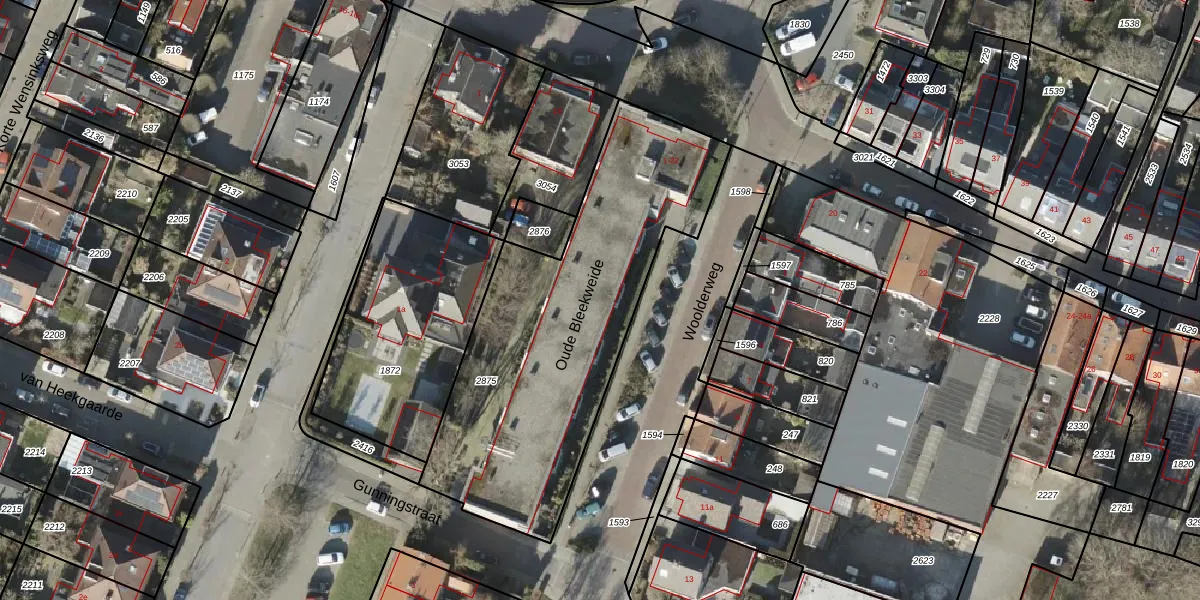 Het perceel waarop Oude Bleekweide 4 staat heeft een oppervlakte van 1600 m². Dit is een zeer groot perceel. De perceeloppervlakte wordt geregistreerd door het Kadaster. Gedetailleerde informatie over de maten van dit perceel kunt u vinden in het rapport Kadastrale kaart met maatvoering van Oude Bleekweide 4.