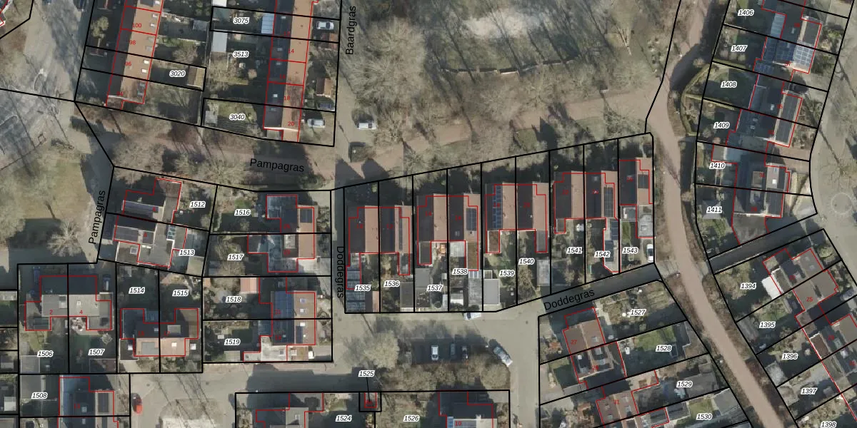 Het perceel waarop Pampagras 14 staat heeft een oppervlakte van 263 m². Dit is een middelgroot perceel. De perceeloppervlakte wordt geregistreerd door het Kadaster. Gedetailleerde informatie over de maten van dit perceel kunt u vinden in het rapport Kadastrale kaart met maatvoering van Pampagras 14.