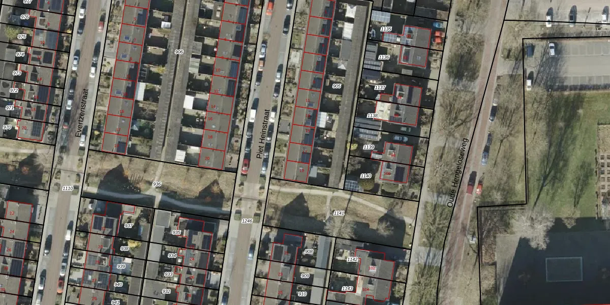 Het perceel waarop Piet Heinstraat 17 staat heeft een oppervlakte van 1524 m². Dit is een zeer groot perceel. De perceeloppervlakte wordt geregistreerd door het Kadaster. Gedetailleerde informatie over de maten van dit perceel kunt u vinden in het rapport Kadastrale kaart met maatvoering van Piet Heinstraat 17.