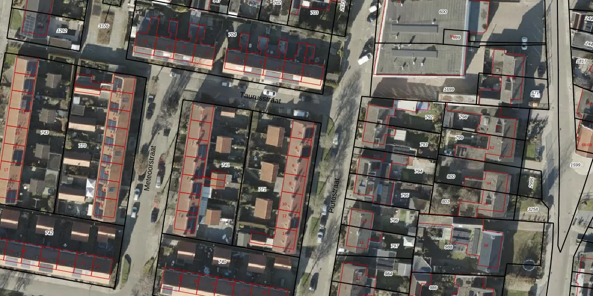 Het perceel waarop Plutostraat 4 staat heeft een oppervlakte van 1062 m². Dit is een zeer groot perceel. De perceeloppervlakte wordt geregistreerd door het Kadaster. Gedetailleerde informatie over de maten van dit perceel kunt u vinden in het rapport Kadastrale kaart met maatvoering van Plutostraat 4.
