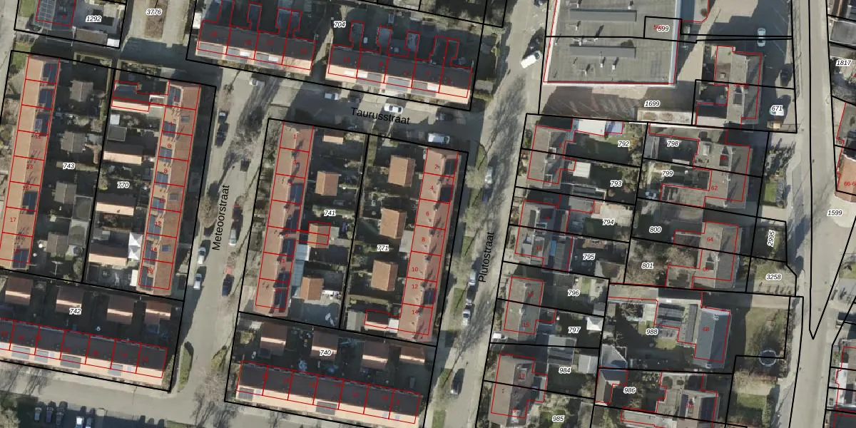 Het perceel waarop Plutostraat 6 staat heeft een oppervlakte van 1062 m². Dit is een zeer groot perceel. De perceeloppervlakte wordt geregistreerd door het Kadaster. Gedetailleerde informatie over de maten van dit perceel kunt u vinden in het rapport Kadastrale kaart met maatvoering van Plutostraat 6.
