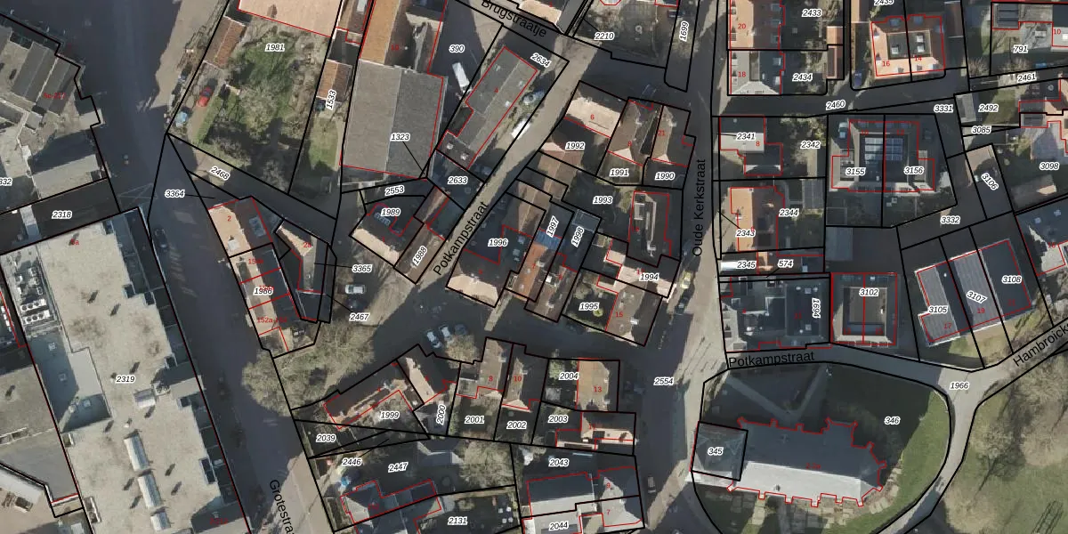Gebruik de zoekbalk of klik op een perceel voor informatie over de adressen binnen dit perceel.
