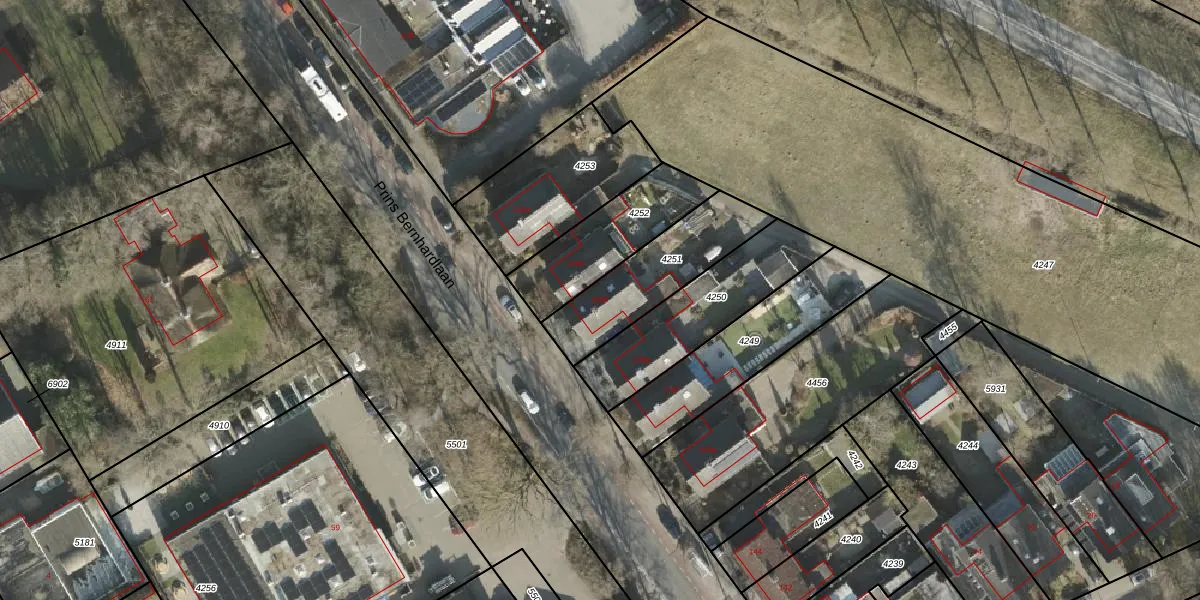 Het perceel waarop Prins Bernhardlaan 146-b staat heeft een oppervlakte van 376 m². Dit is een groot perceel. De perceeloppervlakte wordt geregistreerd door het Kadaster. Gedetailleerde informatie over de maten van dit perceel kunt u vinden in het rapport Kadastrale kaart met maatvoering van Prins Bernhardlaan 146-b.